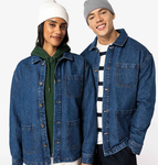 100% organic cotton. Faded effect. Straight fit. Slightly drop shoulder style. Collar stand. Contrast horn effect recycled plastic button closure. Personalisation patch inside neck. Hanging loop. Patch left chest pocket. Two patch front pockets. Button cuff with slit. Contrast stitching Single needle hem. Tag free. Garment washed after assembly, colours may vary slightly. The colour may rub off on contact with light surfaces or clothing.